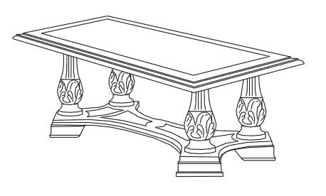 • Резьба, виньетки, кариатиды, капители, колонны выточенные и резные столы и столики, фризы, декоративные фронтальные части выдвижных ящиков и диванов, резьба базы и подлокотников директорского кресла, настольная лампа, торшер.