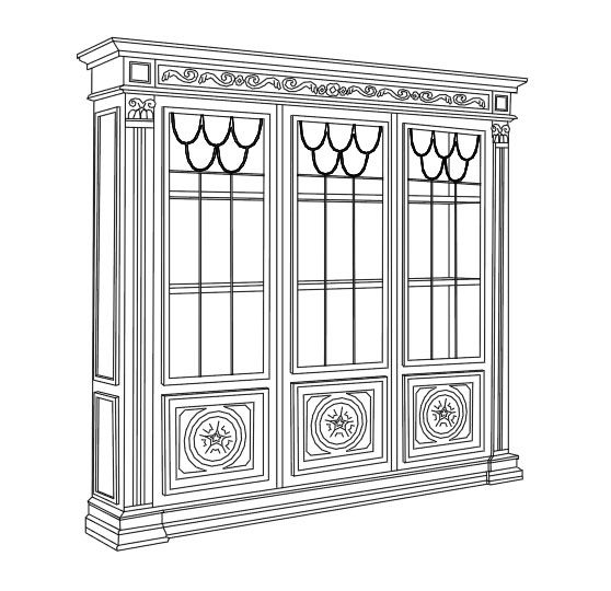 • Резьба, виньетки, кариатиды, капители, колонны выточенные и резные столы и столики, фризы, декоративные фронтальные части выдвижных ящиков и диванов, резьба базы и подлокотников директорского кресла, настольная лампа, торшер.