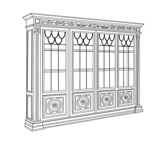 • Резьба, виньетки, кариатиды, капители, колонны выточенные и резные столы и столики, фризы, декоративные фронтальные части выдвижных ящиков и диванов, резьба базы и подлокотников директорского кресла, настольная лампа, торшер.