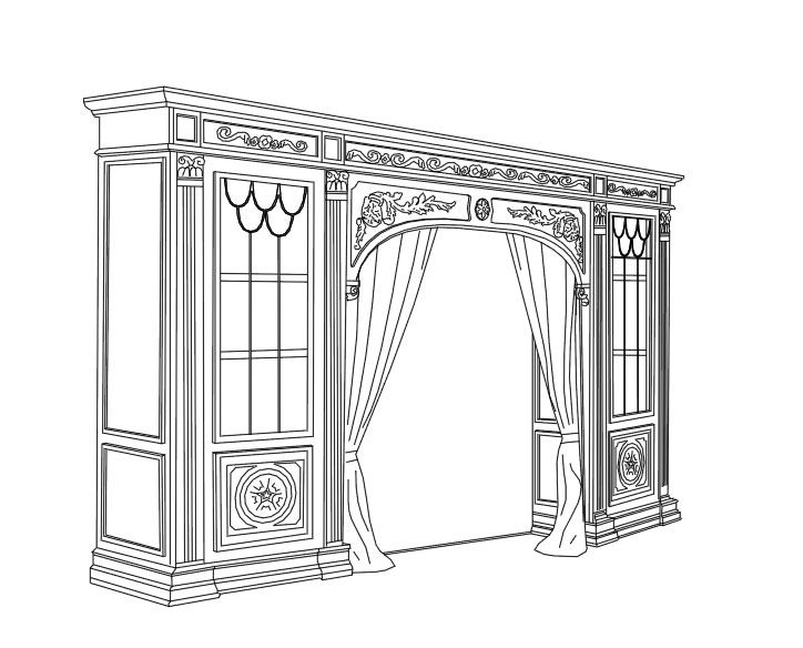 • Резьба, виньетки, кариатиды, капители, колонны выточенные и резные столы и столики, фризы, декоративные фронтальные части выдвижных ящиков и диванов, резьба базы и подлокотников директорского кресла, настольная лампа, торшер.