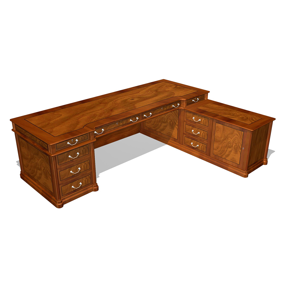 Стол руководителя со столешницей с покрытием правый 250x190x78 зеленая кожа
