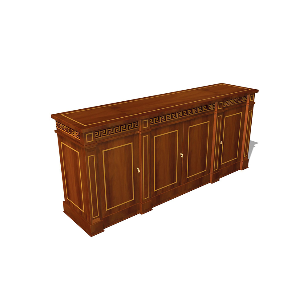 Стенка низкая 4-х дверная 220x52.5x95 красное дерево