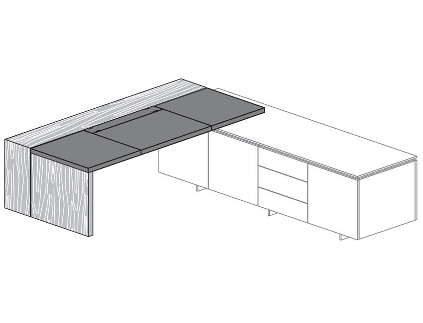 Толщина столешниц и опор - 50 мм, профиль - металлический хромовый матовый, кабель-канал - экокожа. Столешница - экокожа, опоры - шпон