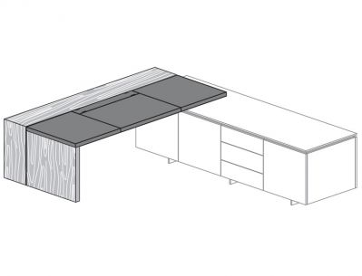 Особенности: система открывания дверей push, в столешницах столов встроенный кабель-канал из экокожи.