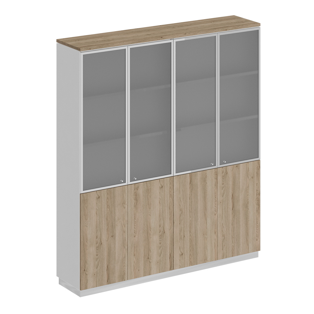 Шкаф для документов со стеклянными дверьми 180.2x40x203.4 дуб гладстоун светлый / белый премиум / дуб гладстоун светлый