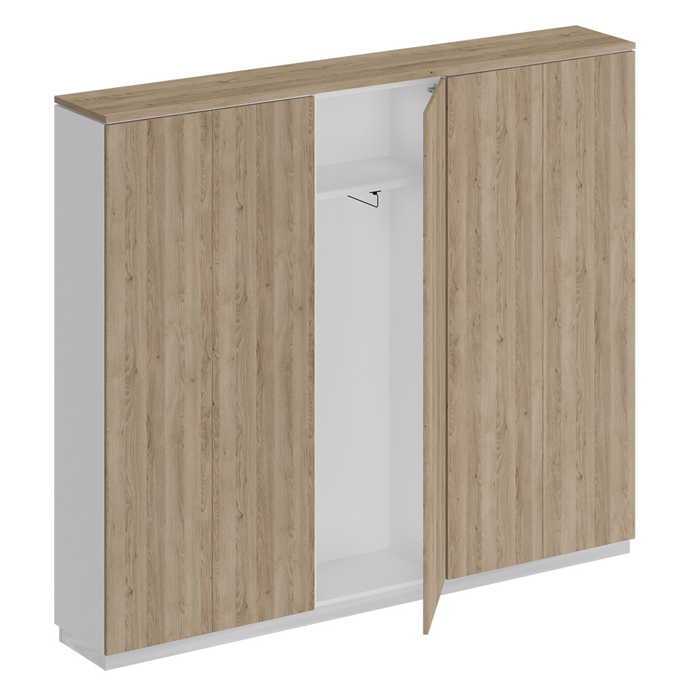- Изделие является стенкой из двух закрытых шкафов для документов и узкого шкафа для одежды под общим топом.