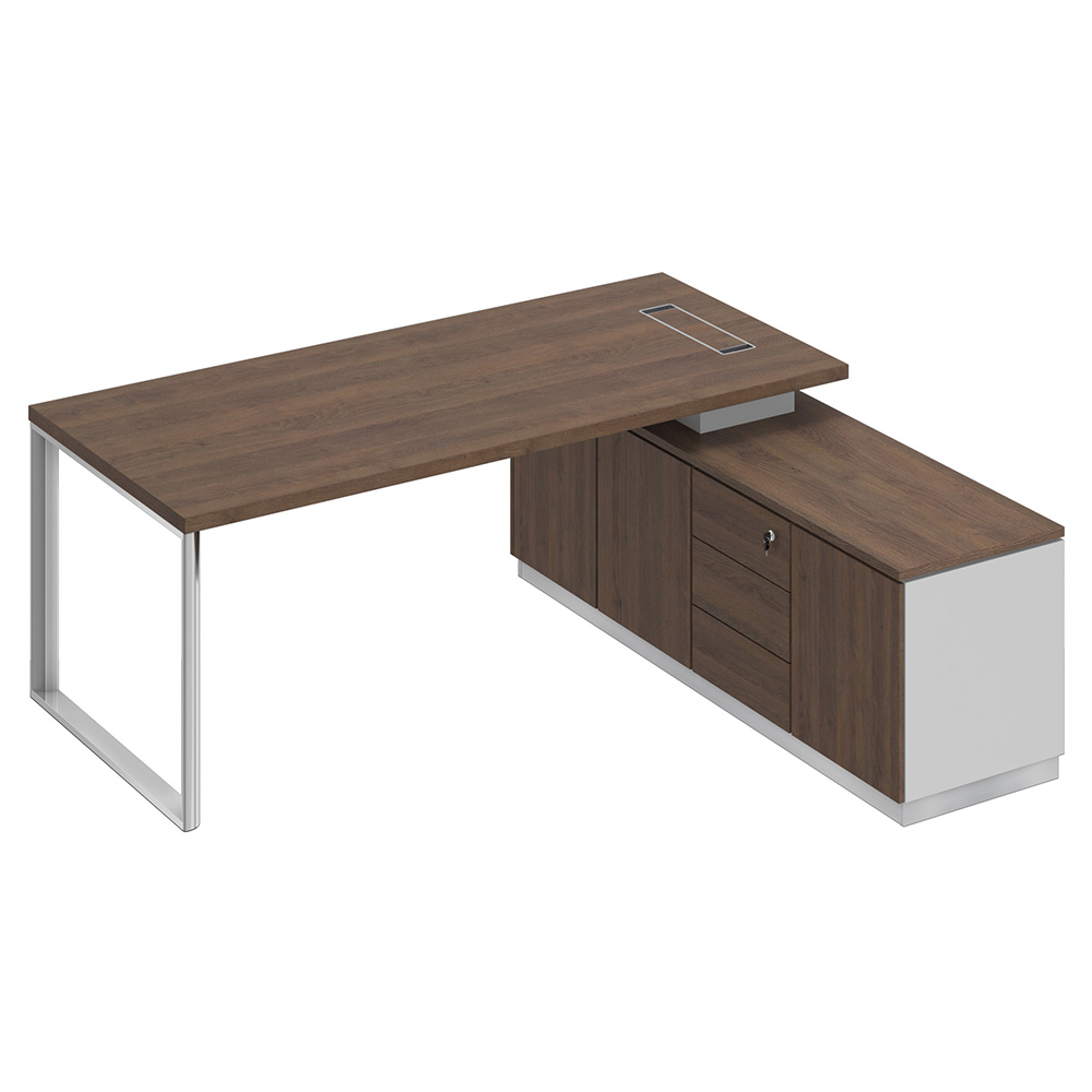 - Конструкция стола предусматривает правое/левое расположение опорной тумбы.