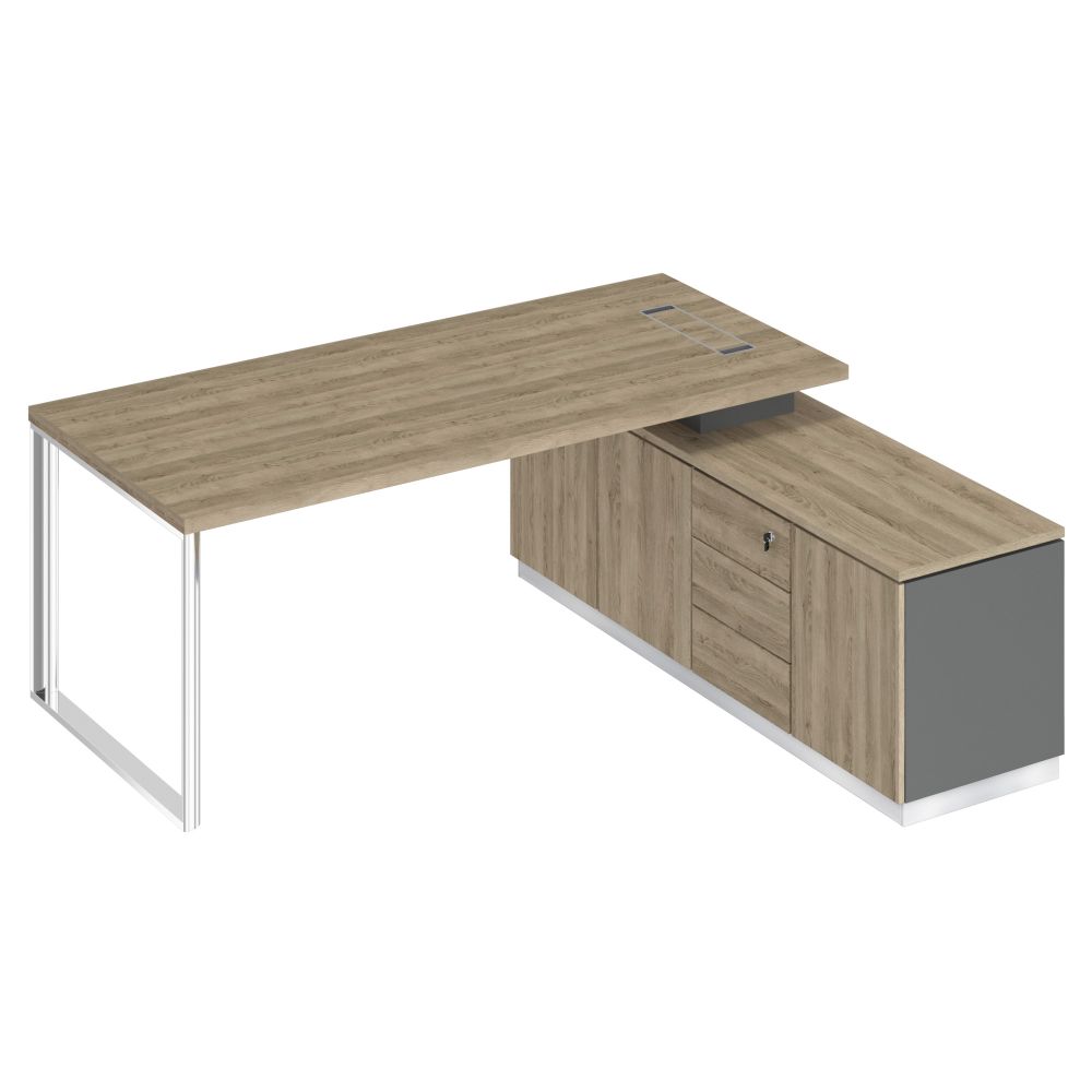 Стол руководителя на опорной тумбе (левый/правый) 200x180x75 дуб гладстоун светлый / антрацит премиум / дуб гладстоун светлый