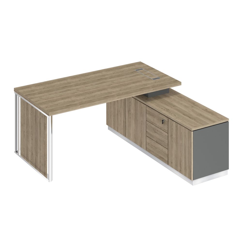 - Конструкция стола предусматривает правое/левое расположение опорной тумбы.