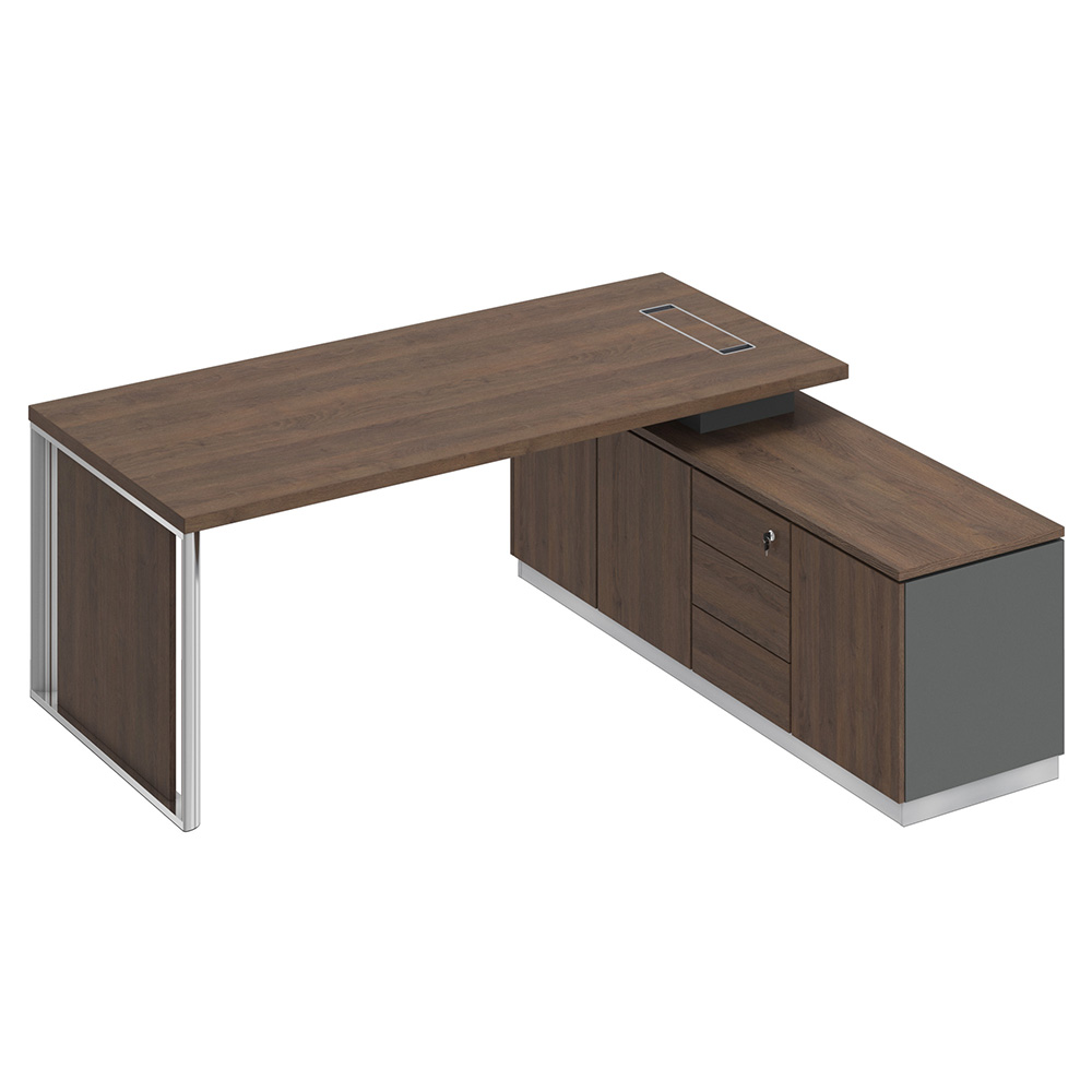 Стол руководителя на опорной тумбе с декоративной вставкой 200x180x75 дуб гладстоун / антрацит премиум / дуб гладстоун