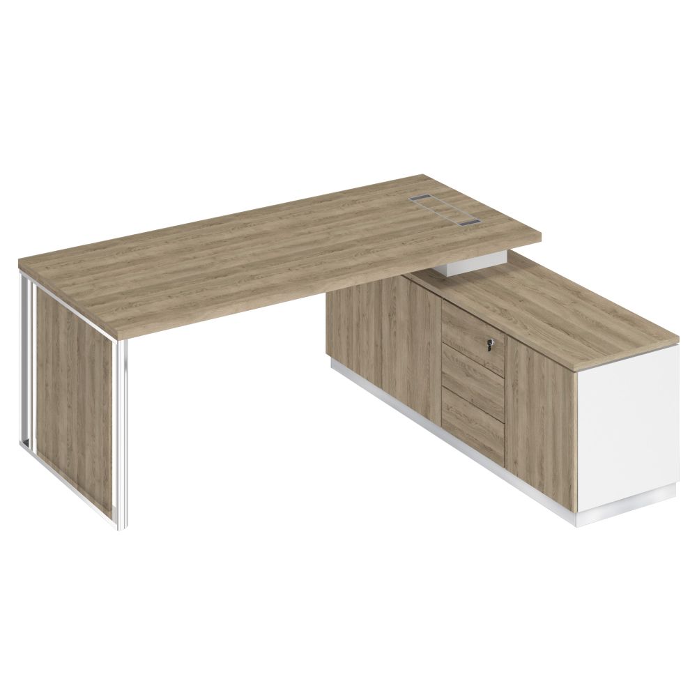 Стол руководителя на опорной тумбе с декоративной вставкой 200x180x75 дуб гладстоун светлый / белый премиум / дуб гладстоун светлый