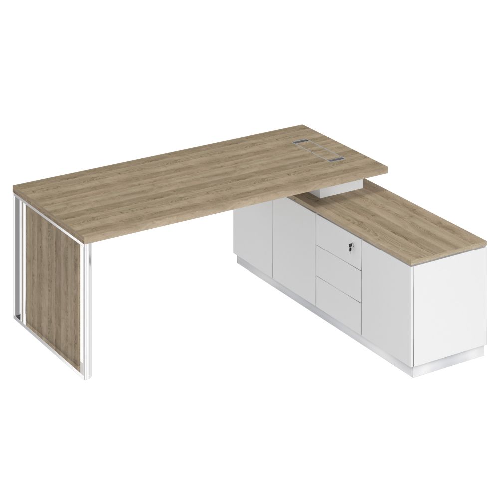 Стол руководителя на опорной тумбе с декоративной вставкой 200x180x75 дуб гладстоун светлый / белый премиум / белый премиум