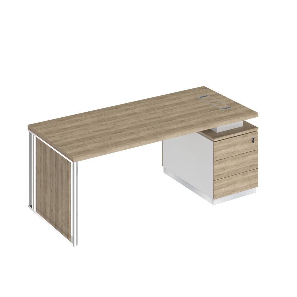 - Конструкция стола предусматривает правое/левое расположение опорной тумбы.