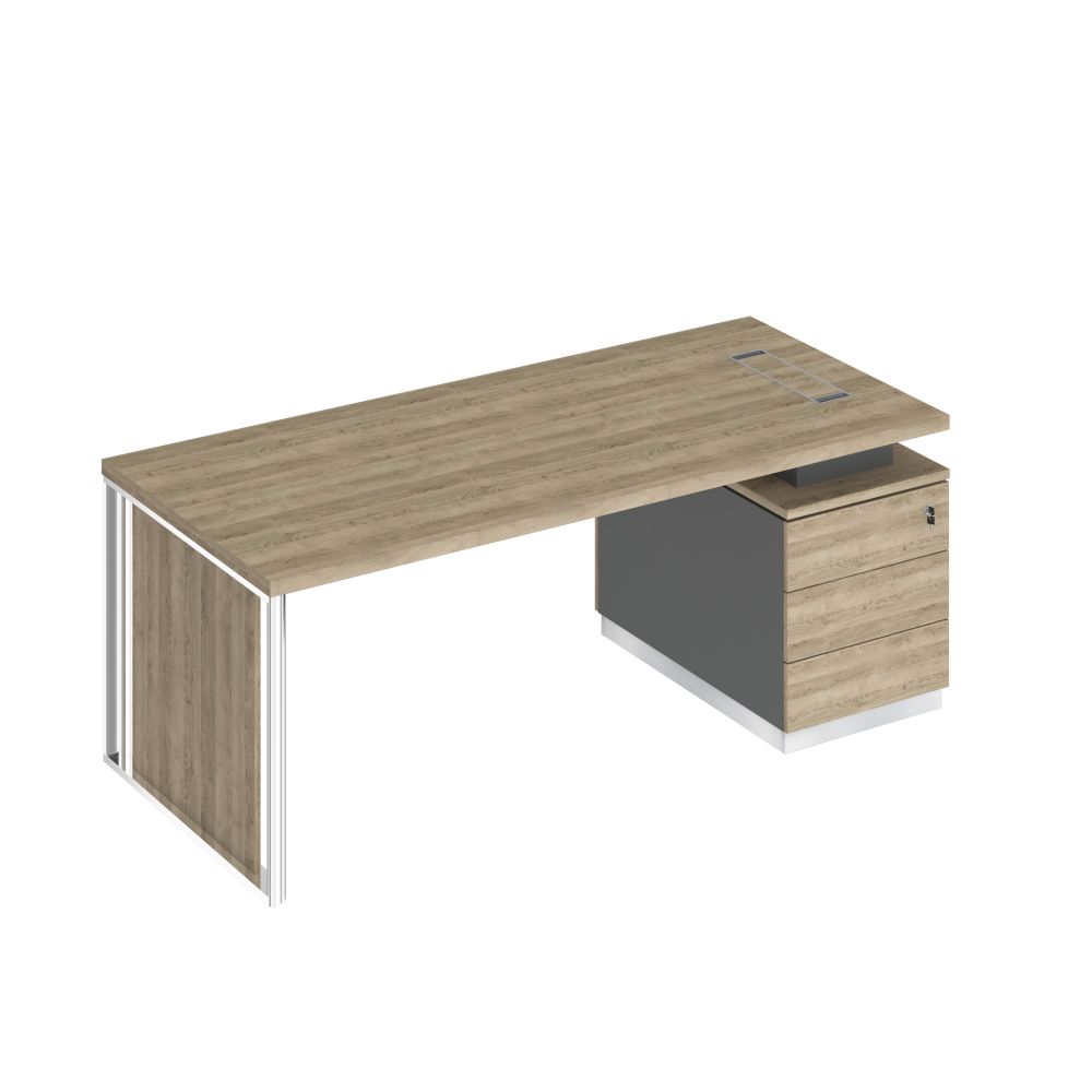 - Конструкция стола предусматривает правое/левое расположение опорной тумбы.