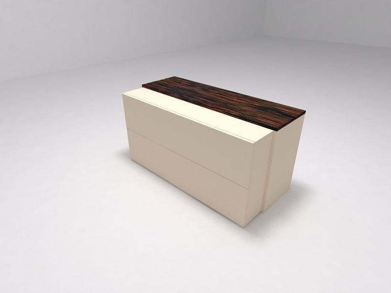Рабочие поверхности (столешницы, топы шкафов и тумб): толщина столешницы - 18 мм, при этом создается имитация толщины 70 мм. Топы тумб - акрил, меламин или шпон толщиной 20 мм. Топы шкафов - акрил, меламин или шпон толщиной 20 мм.