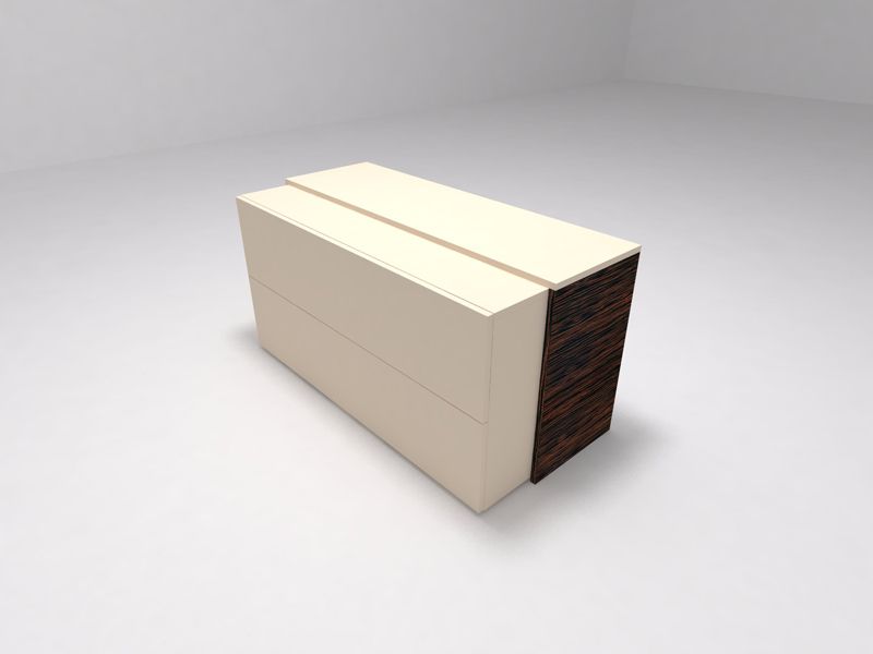 Рабочие поверхности (столешницы, топы шкафов и тумб): толщина столешницы - 18 мм, при этом создается имитация толщины 70 мм. Топы тумб - акрил, меламин или шпон толщиной 20 мм. Топы шкафов - акрил, меламин или шпон толщиной 20 мм.