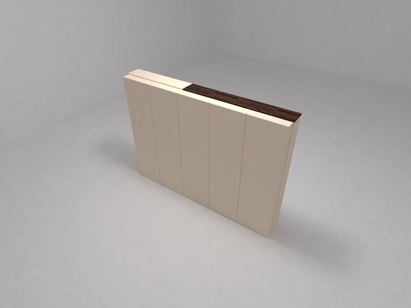 Рабочие поверхности (столешницы, топы шкафов и тумб): толщина столешницы - 18 мм, при этом создается имитация толщины 70 мм. Топы тумб - акрил, меламин или шпон толщиной 20 мм. Топы шкафов - акрил, меламин или шпон толщиной 20 мм.