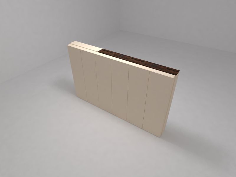 Рабочие поверхности (столешницы, топы шкафов и тумб): толщина столешницы - 18 мм, при этом создается имитация толщины 70 мм. Топы тумб - акрил, меламин или шпон толщиной 20 мм. Топы шкафов - акрил, меламин или шпон толщиной 20 мм.