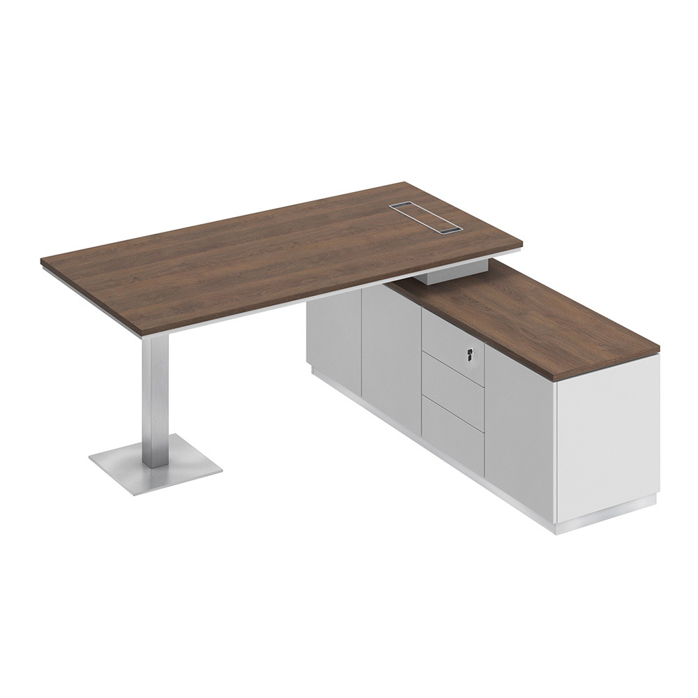 - Конструкция стола предусматривает правое/левое расположение опорной тумбы.