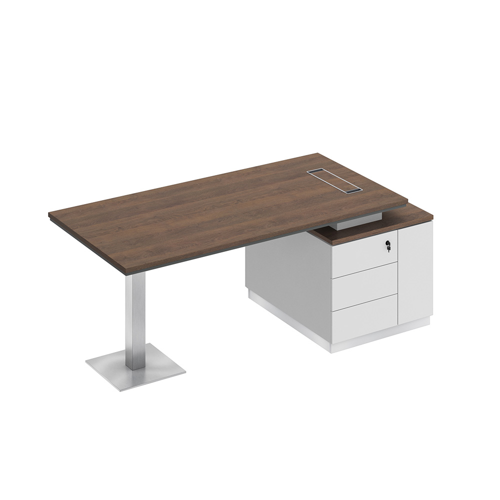 - Конструкция стола предусматривает правое/левое расположение опорной тумбы.