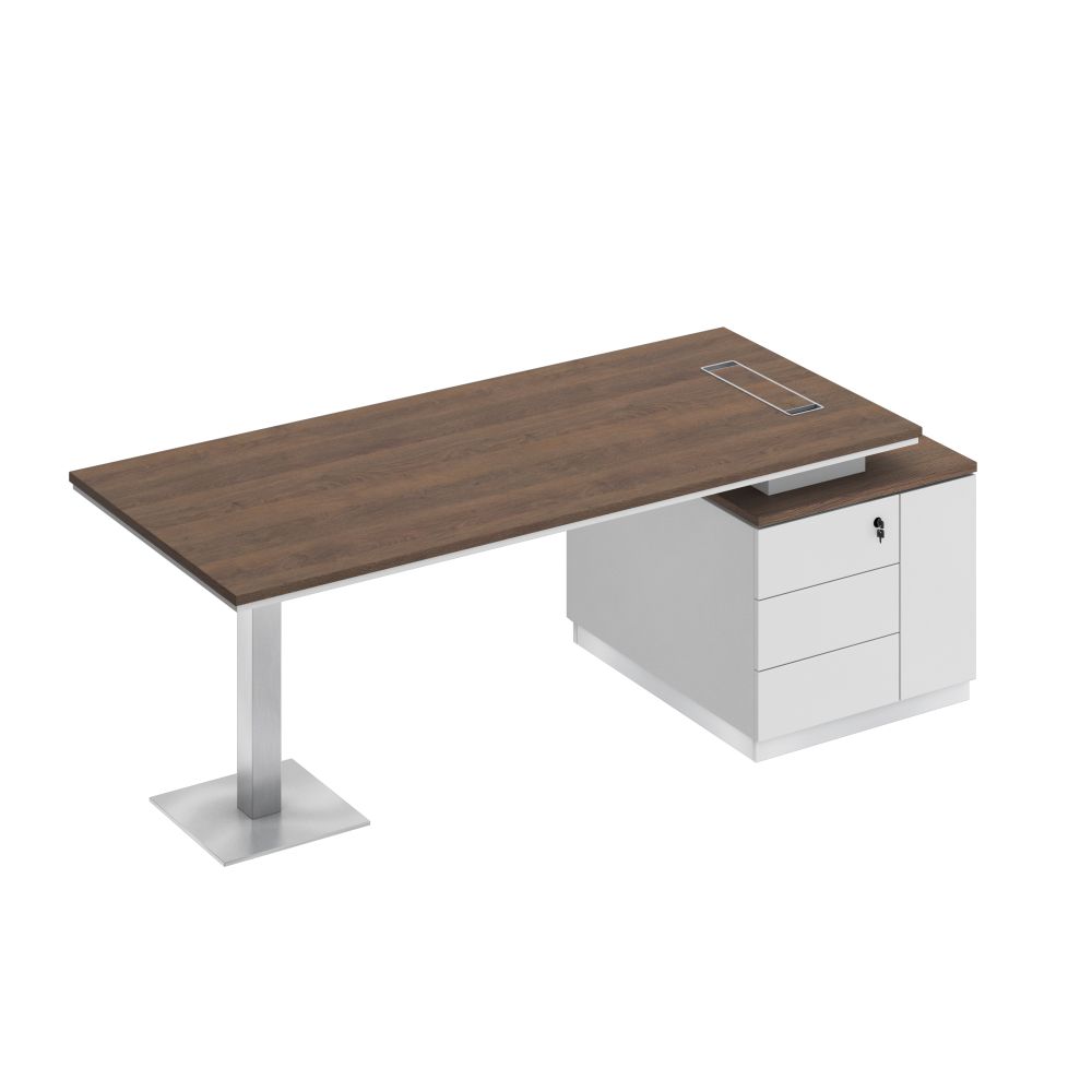 - Конструкция стола предусматривает правое/левое расположение опорной тумбы.