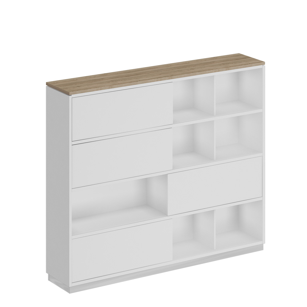 - Каркас шкафа состоит из 2-х секций для документов с 3-мя фиксированными по высоте полками в каждой секции.