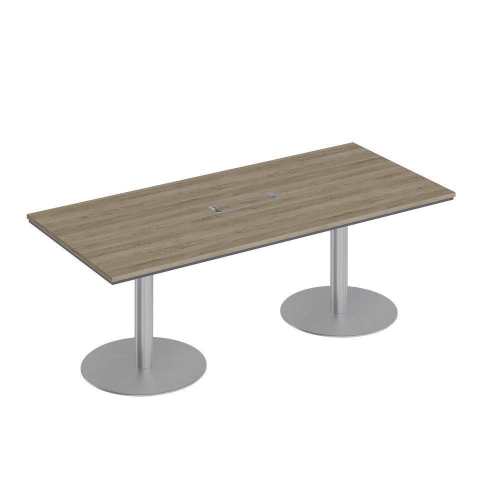 Стол для переговоров на круглых опорах-колоннах 220x90x75.7 дуб гладстоун светлый (столешница, фасад, топ) / антрацит премиум (корпус)