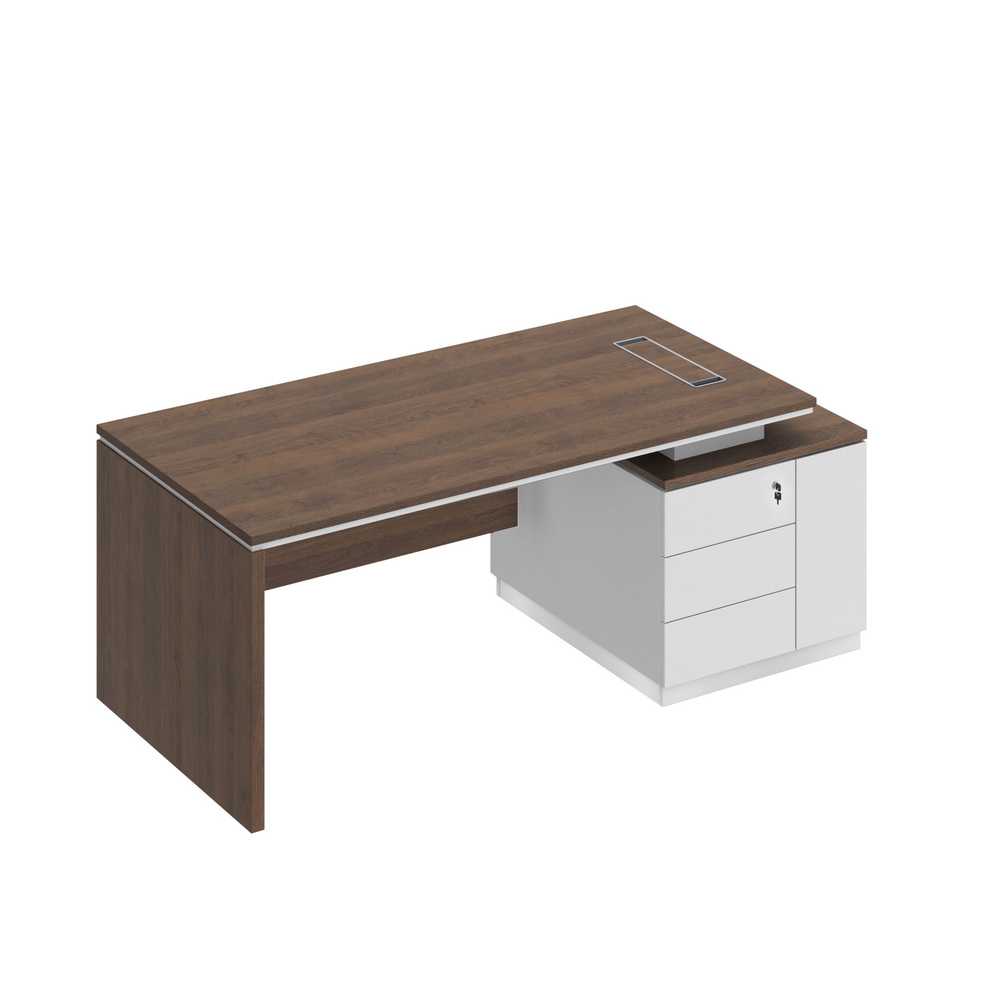 - Со стороны пользователя опорная тумба имеет 3 выдвижных ящика, установленных на скрытые шариковые направляющие с системой встроенного демпфирования и нишу под системный блок компьютера со скрытым размещением проводки, укомплектованную распашной дверью с системой открывания Push Up (без ручек).