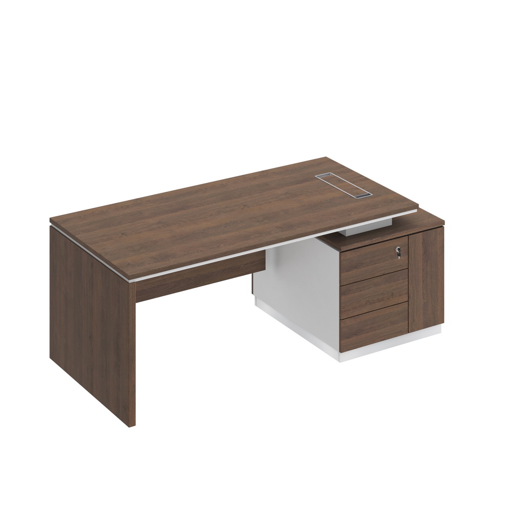 - Со стороны пользователя опорная тумба имеет 3 выдвижных ящика, установленных на скрытые шариковые направляющие с системой встроенного демпфирования и нишу под системный блок компьютера со скрытым размещением проводки, укомплектованную распашной дверью с системой открывания Push Up (без ручек).