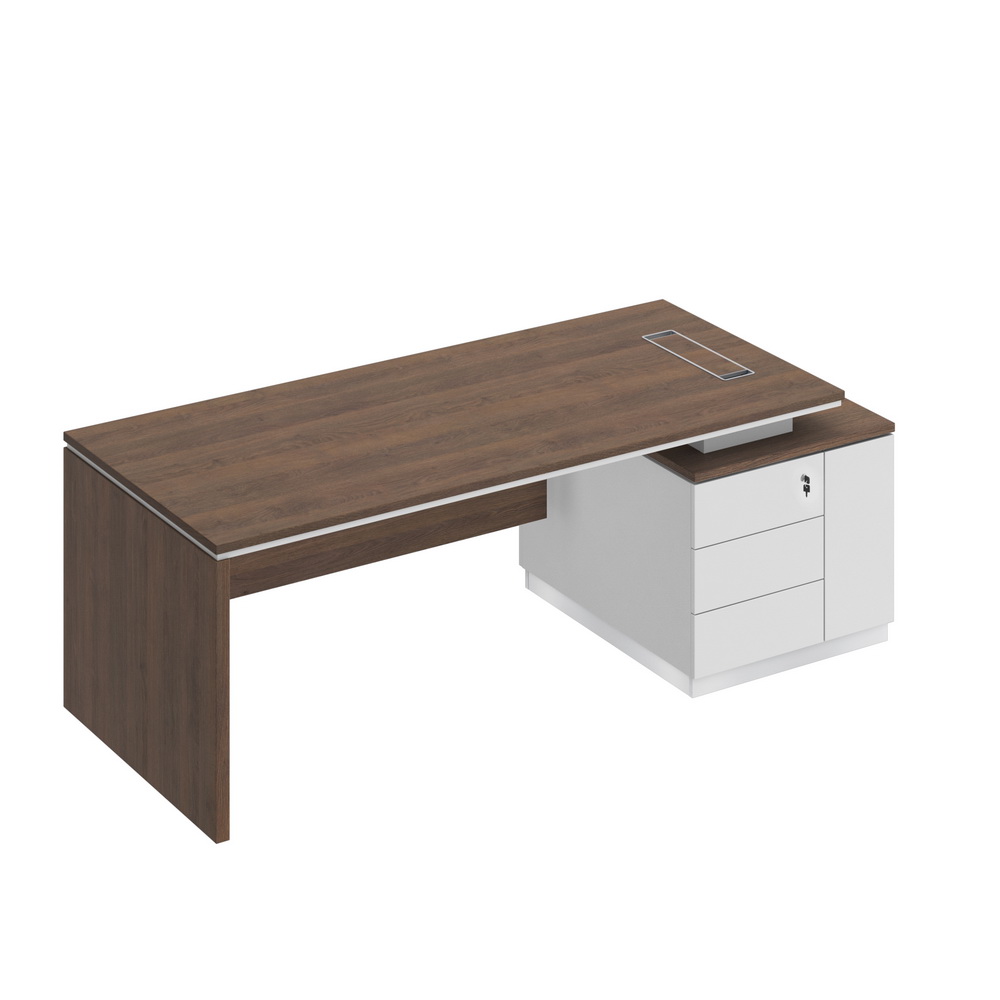 - Со стороны Пользователя опорная тумба имеет 3 выдвижных ящика, установленных на скрытые шариковые направляющие с системой встроенного демпфирования и нишу под системный блок компьютера со скрытым размещением проводки, укомплектованную распашной дверью с системой открывания Push Up (без ручек).