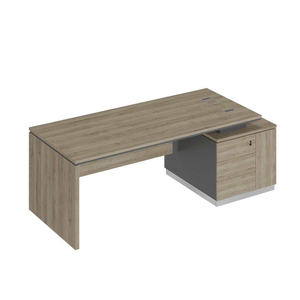 - Со стороны Пользователя опорная тумба имеет 3 выдвижных ящика, установленных на скрытые шариковые направляющие с системой встроенного демпфирования и нишу под системный блок компьютера со скрытым размещением проводки, укомплектованную распашной дверью с системой открывания Push Up (без ручек).
