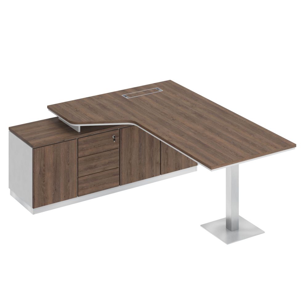 Стол руководителя эргономичный на опорной тумбе левый 180x180x75 дуб гладстоун / белый премиум / дуб гладстоун