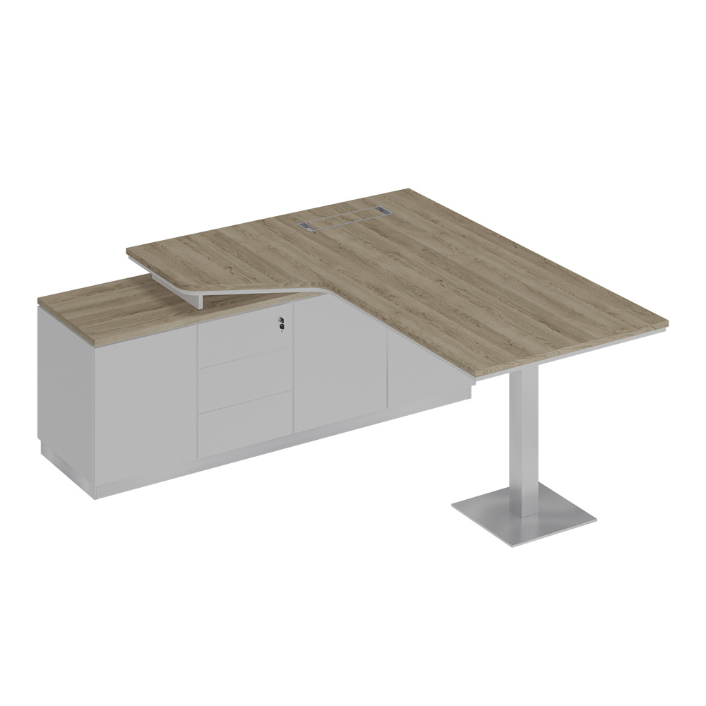 Стол руководителя эргономичный на опорной тумбе левый 180x180x75 дуб гладстоун светлый / белый премиум / белый премиум