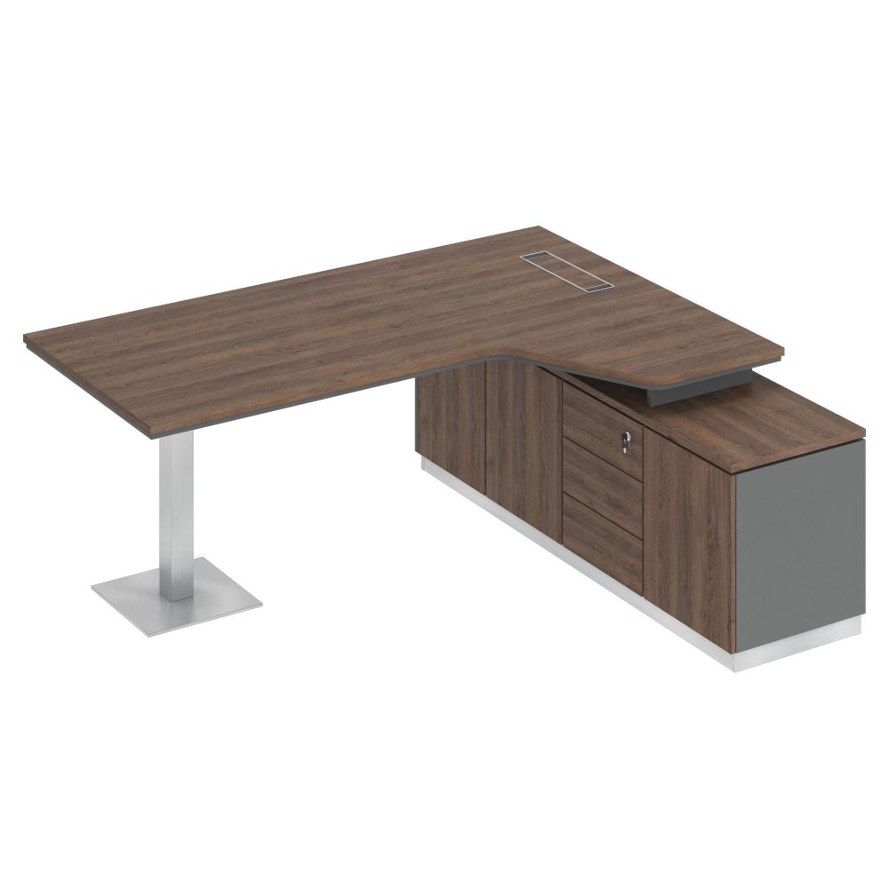 Стол руководителя эргономичный на опорной тумбе правый 180x180x75 дуб гладстоун / антрацит премиум / дуб гладстоун