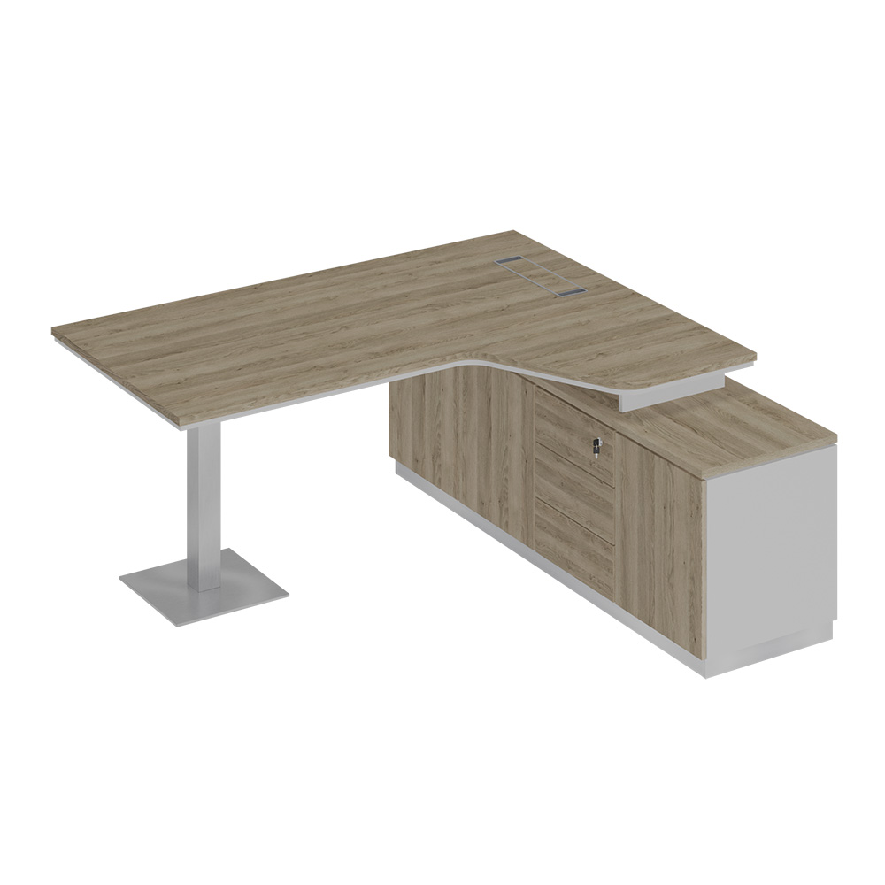 Стол руководителя эргономичный на опорной тумбе правый 180x180x75 дуб гладстоун светлый / белый премиум / дуб гладстоун светлый