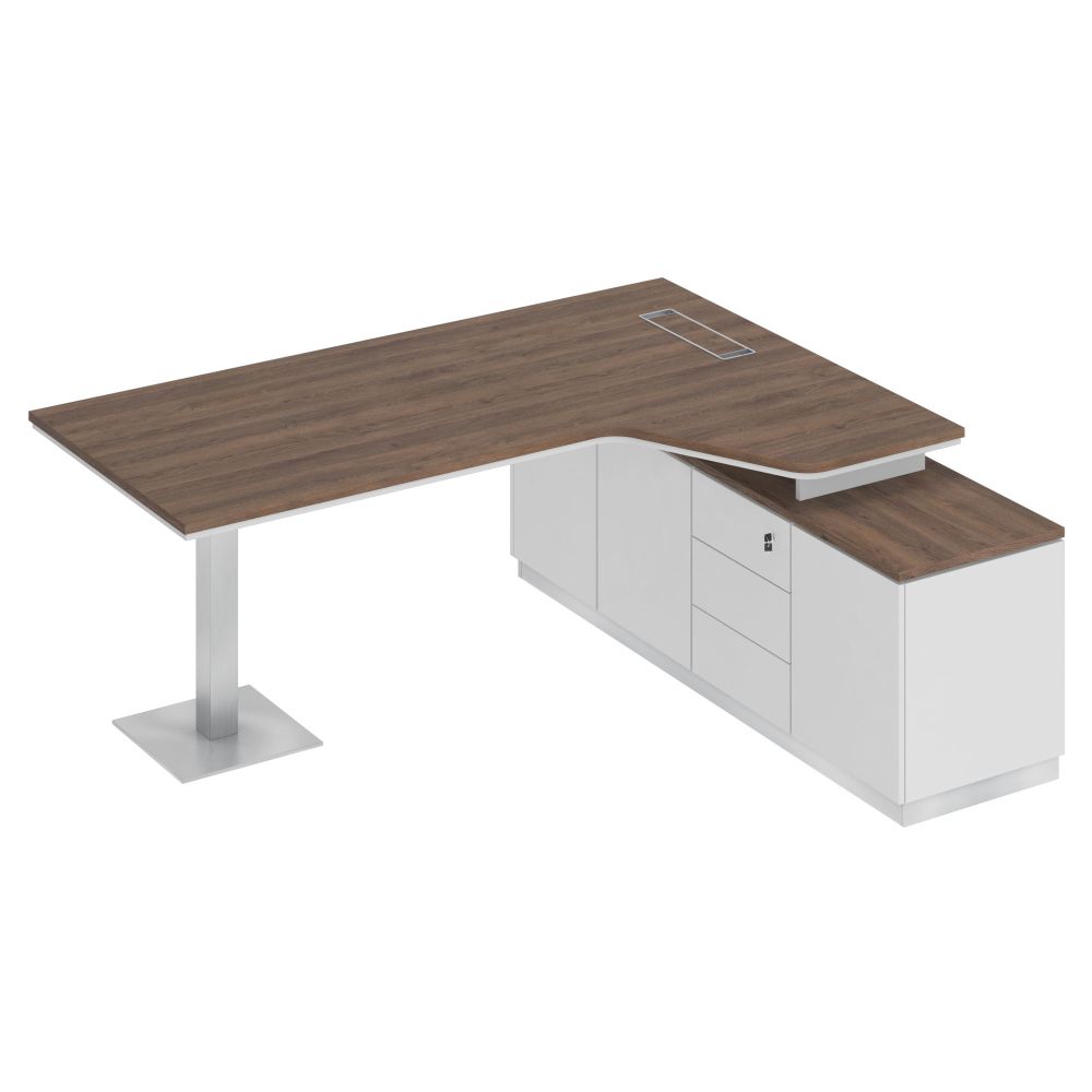 Стол руководителя эргономичный на опорной тумбе правый 200x180x75 дуб гладстоун / белый премиум / белый премиум