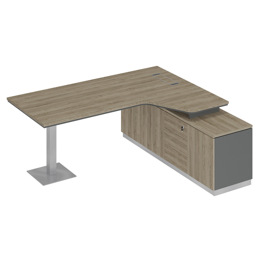 Стол руководителя эргономичный на опорной тумбе правый 200x180x75 дуб гладстоун светлый / антрацит премиум / дуб гладстоун светлый