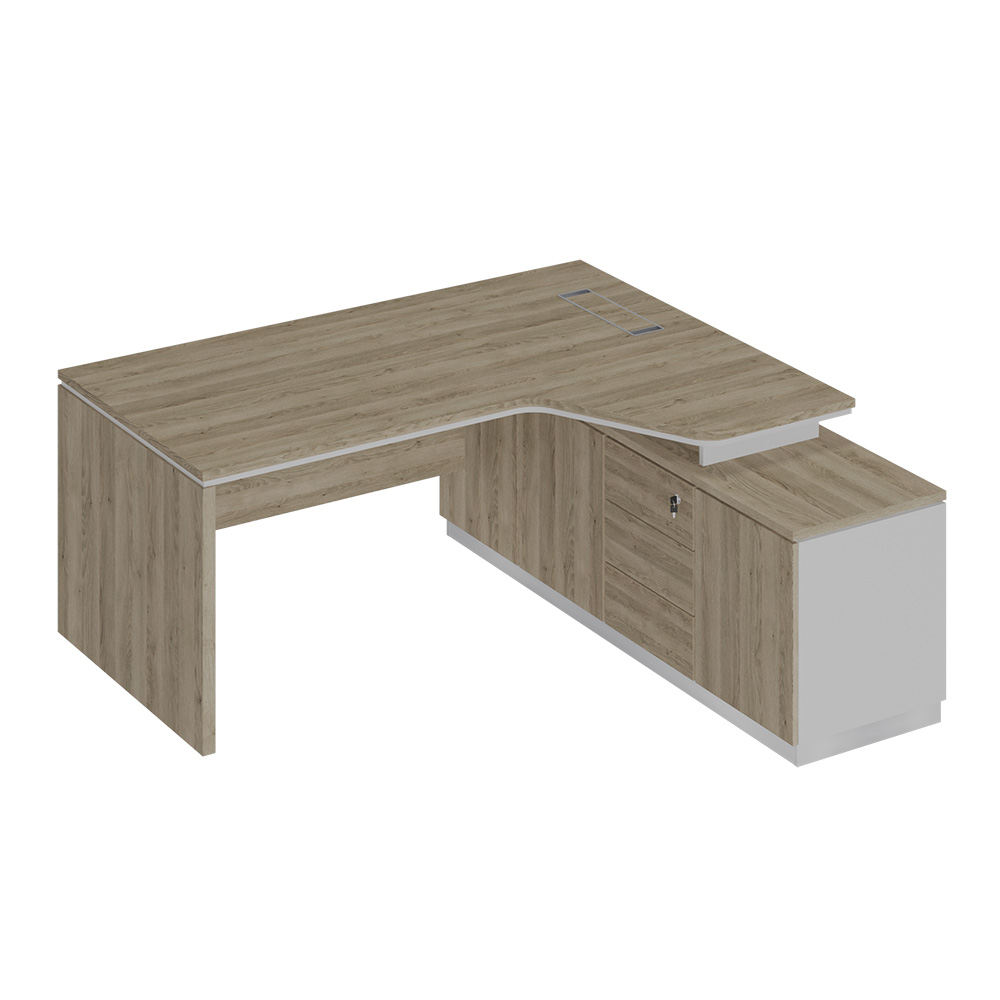 Стол руководителя эргономичный на опорной тумбе правый 180x180x75 дуб гладстоун светлый / белый премиум / дуб гладстоун светлый