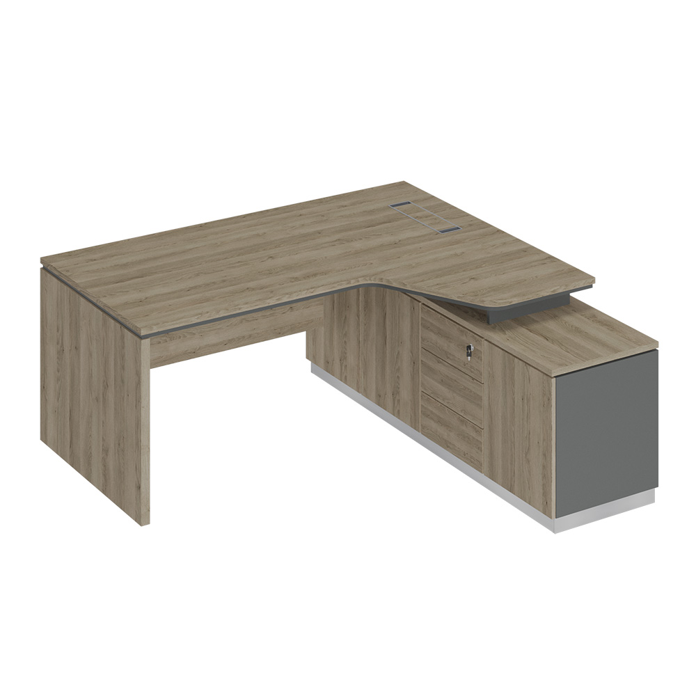 Стол руководителя эргономичный на опорной тумбе правый 180x180x75 дуб гладстоун светлый / антрацит премиум / дуб гладстоун светлый