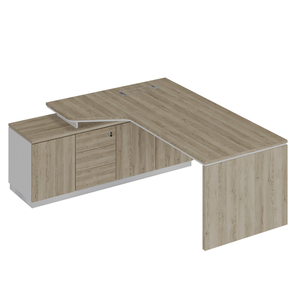 Стол эргономичный на опорной тумбе левый 200x180x75 дуб гладстоун светлый / белый премиум / дуб гладстоун светлый