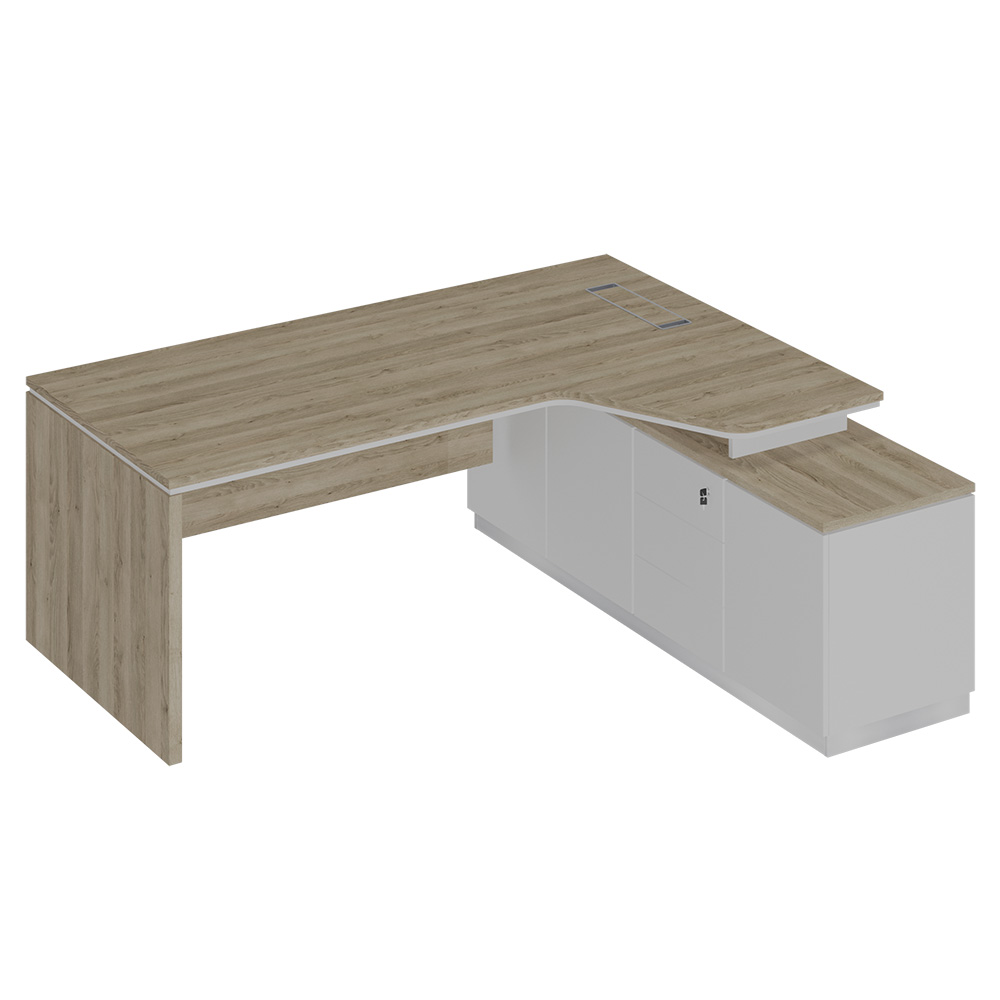 Стол руководителя эргономичный (опора ДСП) на опорной тумбе правый 200x180x75 дуб гладстоун светлый / белый премиум / белый премиум