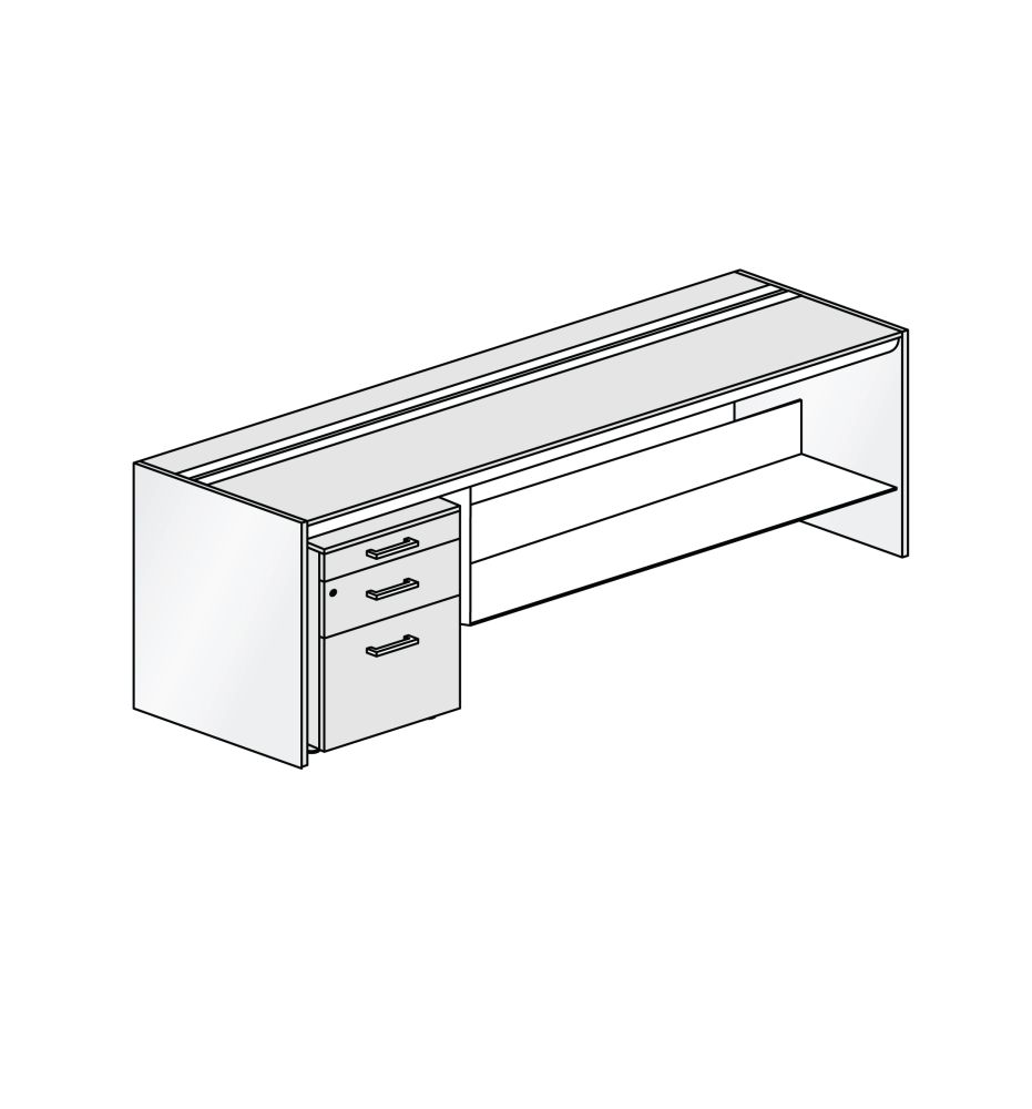 Широкий выбор вариантов отделки. Удобная система кабель-каналов. Системы плавного закрывания (доводки) ящиков стола. Наличие секретера.
