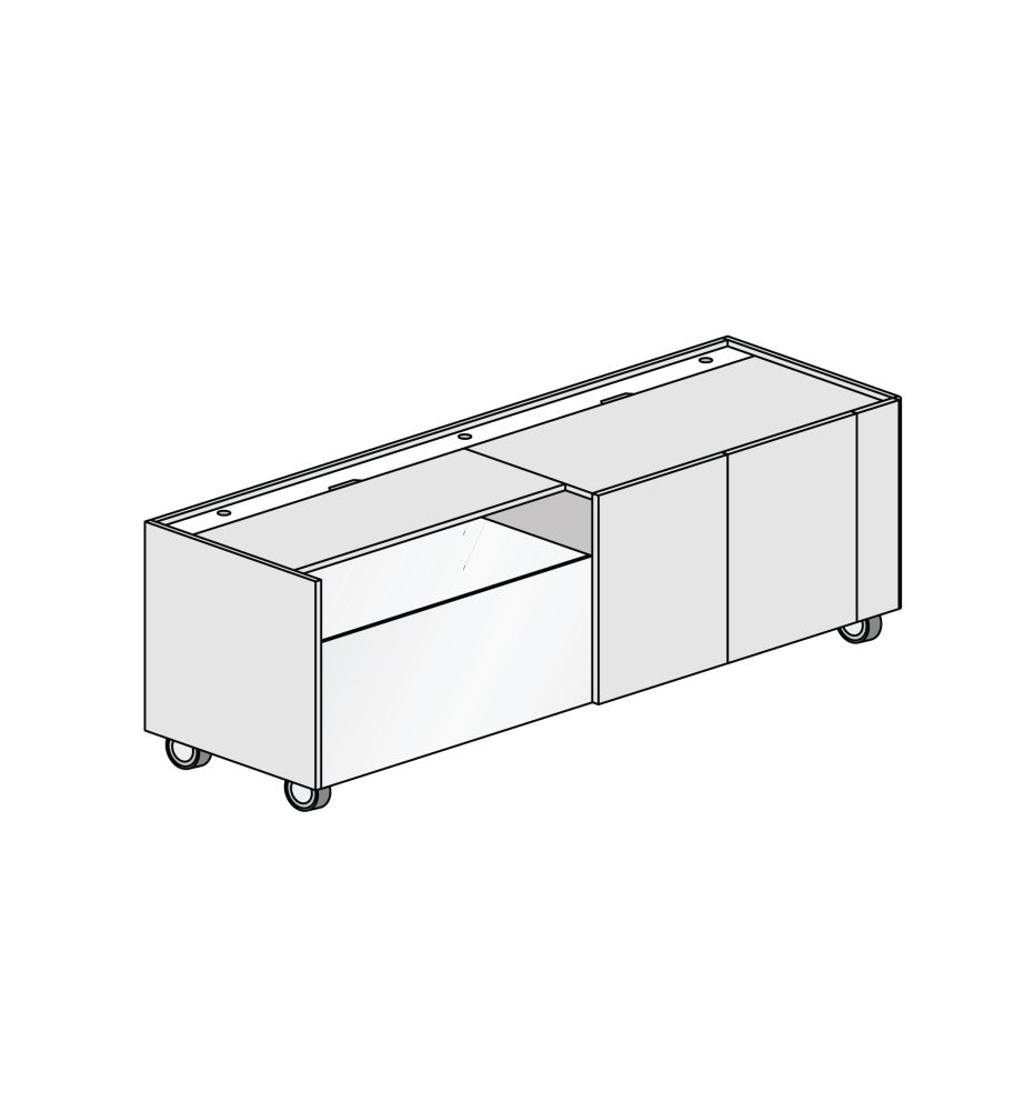 Тумба под оргтехнику, правая 210x65x63 черешня/стекло песочное