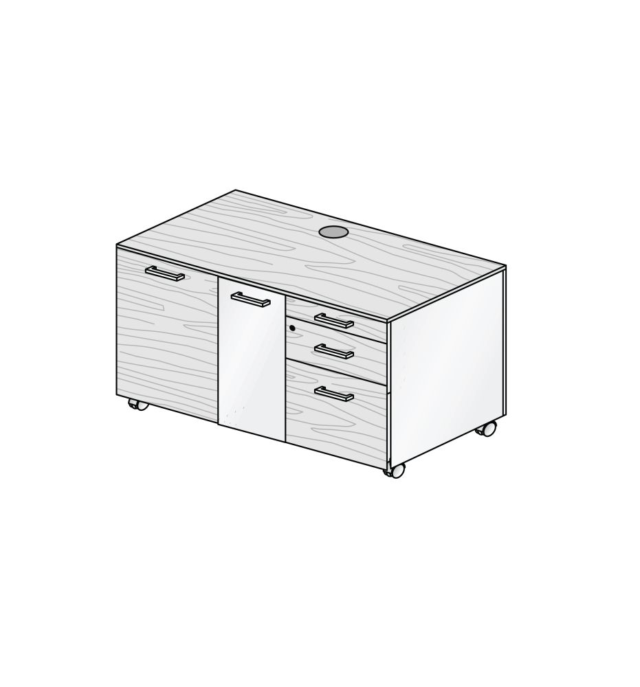 Тумба сервисная с файловым ящиком, правая 110x59x60.8 черешня/стекло песочное