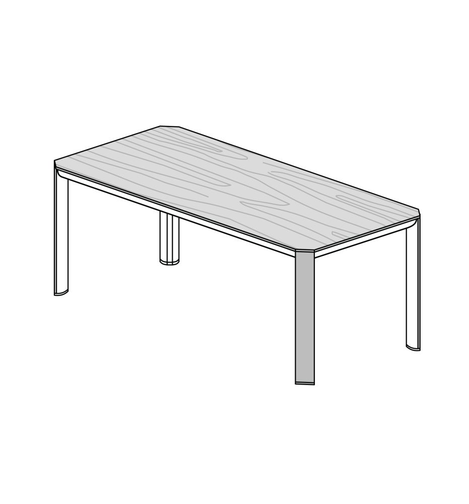 - Опоры: полированный алюминий с накладками из шпона или натуральной кожи.