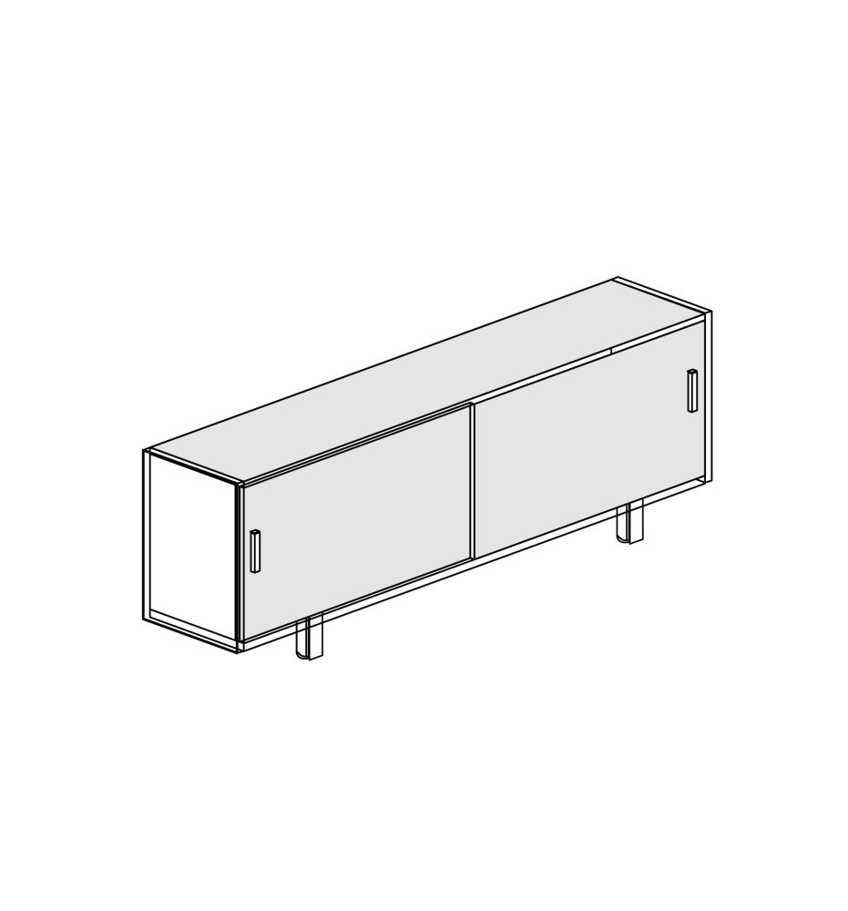 Шкаф низкий 2 двери-купе, шпон/лакировка 200x38x73 черешня/стекло песочное