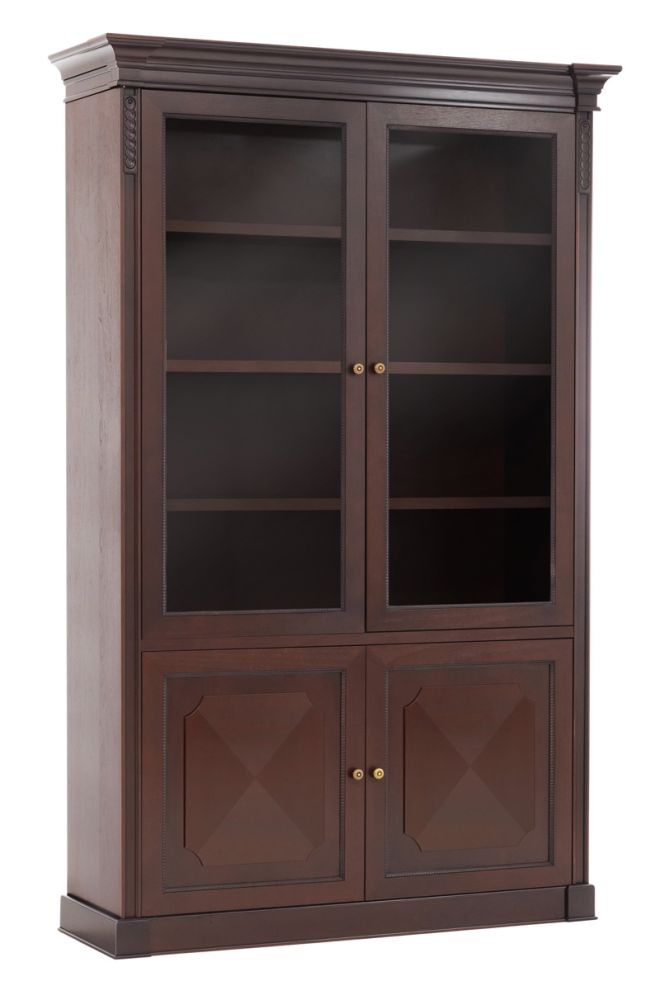 Теплая текстура натурального дерева создает в офисе благоустроенность, а глубокий цвет ореха Танганьика и рельефная резьба делают интерьер похожим на кабинеты с богатой историей. Выдержанный классический стиль Doge призван пробуждать ностальгические воспоминания и ощущение «уютного дома».