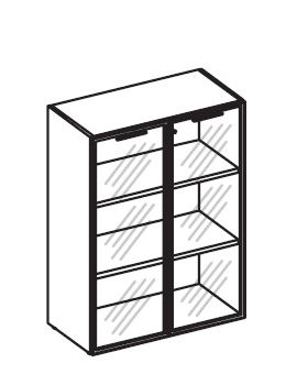 Шкаф средний широкий со стеклянными дверьми 90x45x122 орех (шпон)