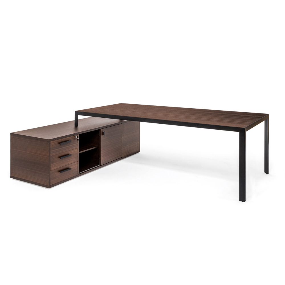 Стол руководителя на опорной тумбе 229x174x75 черный / эвкалипт