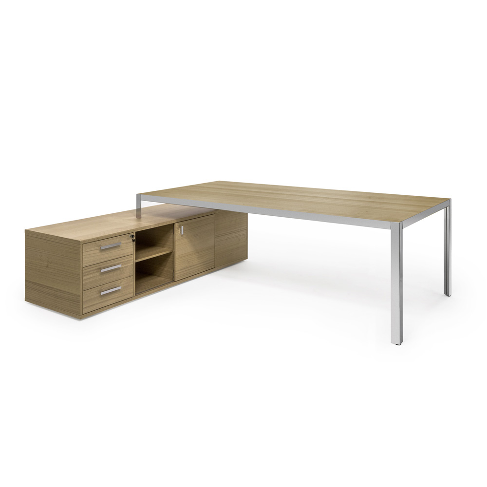 Стол руководителя на опорной тумбе 229x174x75 хром / светлый эвкалипт